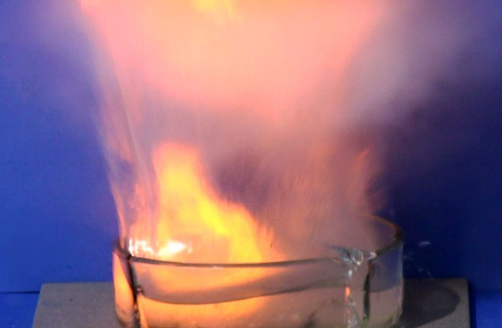 (圖2、金屬鋰在水中發(fā)生化學反應(yīng),燃燒并釋放大量的熱量)