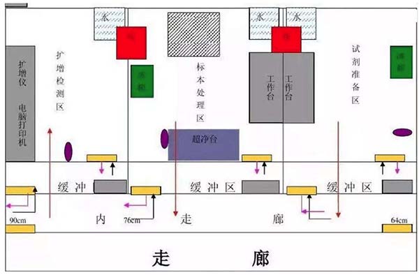 確定實(shí)驗(yàn)室整體平面布置圖, 明確實(shí)驗(yàn)室布局。實(shí)驗(yàn)室要求與辦公區(qū)域有效隔離, 功能區(qū)域劃分明晰, 實(shí)驗(yàn)間互不干擾, 疏散通道暢通。