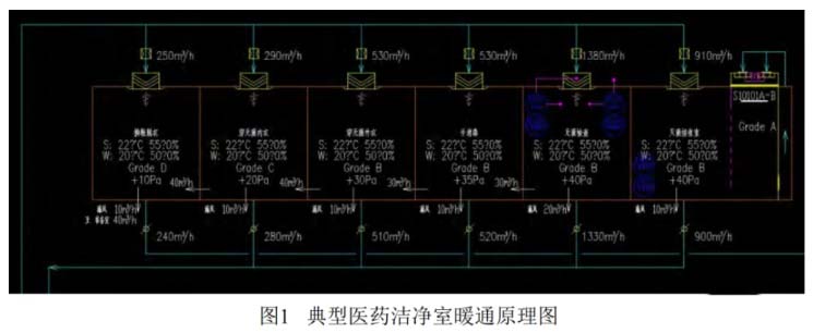 在醫(yī)藥潔凈廠房空調(diào)系統(tǒng)設計時,嚴格按照藥品生產(chǎn)質量管理規(guī)范及相應規(guī)范法規(guī)對環(huán)境的基本要求;根據(jù)相關規(guī)范及規(guī)定對空調(diào)系統(tǒng)進行合理劃分,設計時還要充分考慮藥品生產(chǎn)過程和生產(chǎn)設備對空氣品質所產(chǎn)生的不利影響。