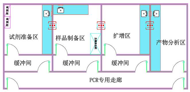 9.各區(qū)域應(yīng)有單向?qū)嶒?yàn)流程、物流、人流和氣流,形成單向過程的防護(hù)屏障,避免實(shí)驗(yàn)干擾和實(shí)驗(yàn)過程中核酸氣溶膠污染的假性結(jié)果。pcr實(shí)驗(yàn)室改造